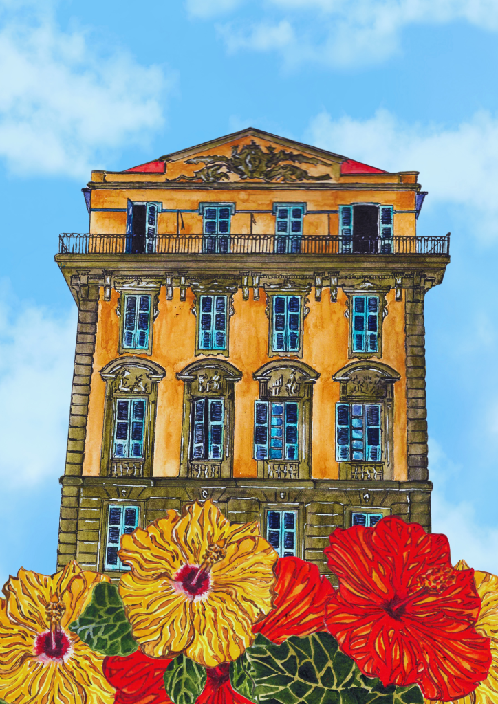 The architecture of the Old Town in Nice exudes a captivating rustic charm that is simply beautiful. Every detail of the scenery outside our apartment window, from the flourishing succulents adorning the surroundings to the house plants indoors, inspired the illustrations below. I was determined to capture the vibrant greens and purples of these mesmerising plants with every stroke.