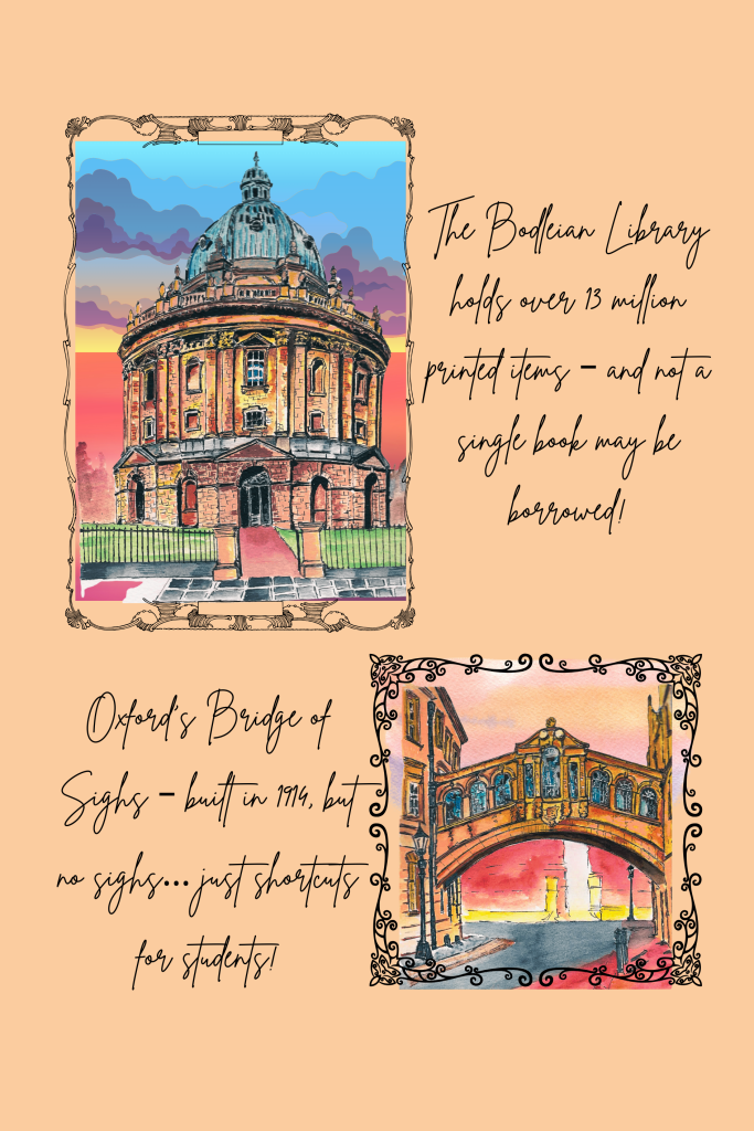 The Oxford collection celebrates two of the city’s best-loved landmarks. The Bodleian Library is captured in glowing sunset hues alongside its quirky fact: over 13 million books live here – and not a single one can be borrowed! Just across the page, the Bridge of Sighs arches gracefully with its playful twist: no sighs, only shortcuts for students since 1914. These towels make learning fun and frame Oxford’s character with wit and colour.